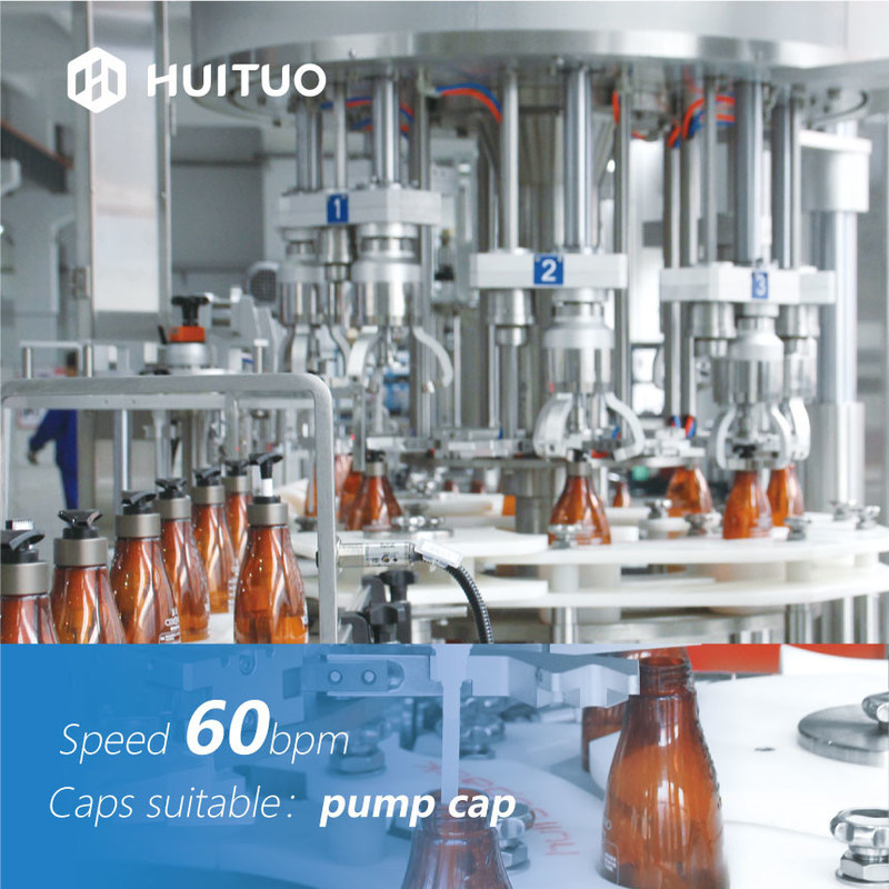 يمكن لآلة السد Huituo التعامل مع أنواع مختلفة من الزجاجات والإغلاق.بالنسبة للزجاجات غير المنتظمة ، سيتم استخدام كرات الصولجان من أجل التشغيل السلس.يوجد ماسك زجاجة لفصل الزجاجة والعفريت تلقائيًا.